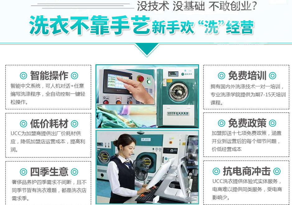 洗衣店加盟需要多少錢?創(chuàng)業(yè)商選擇UCC干洗是不錯(cuò)的選擇,選擇加盟UCC干洗是創(chuàng)業(yè)商比較青睞的創(chuàng)業(yè)項(xiàng)目,在選擇好的創(chuàng)業(yè)項(xiàng)目的同時(shí),需要提 前做好準(zhǔn)備工作,其中了解洗衣店成本是基礎(chǔ),在2015年預(yù)期洗衣店加盟成本需要多少錢?下面就讓UCC國(guó)際洗衣的投資顧問來(lái)給你