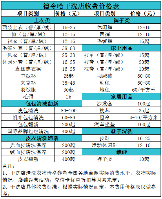 德令哈干洗店收費價格表【詳細收費標準】怎么收費更賺錢