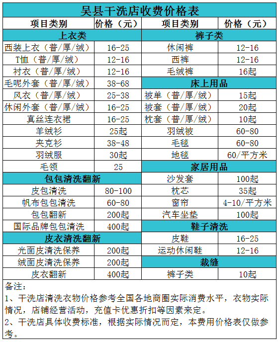 吳縣干洗店收費價格表【詳細收費標準】怎么收費更賺錢