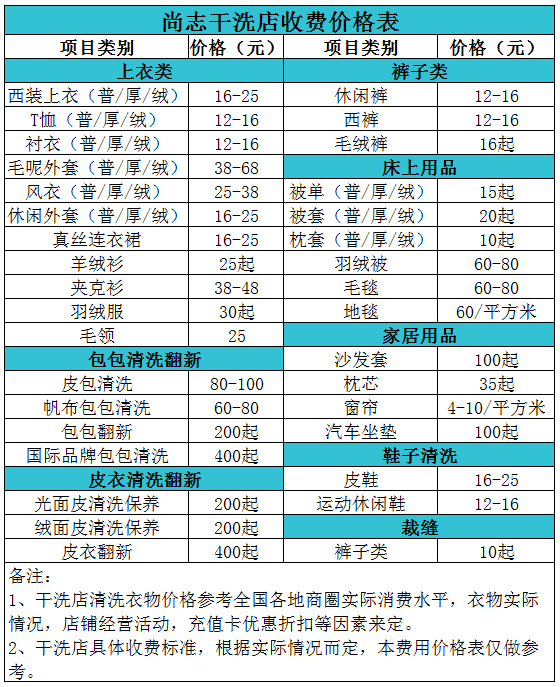 尚志干洗店收費價格表【詳細收費標(biāo)準(zhǔn)】怎么收費更賺錢