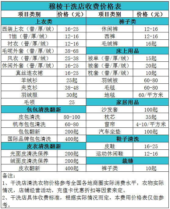 綏芬河干洗店收費價格表【詳細收費標(biāo)準(zhǔn)】怎么收費更賺錢