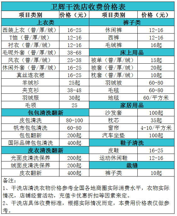 衛輝干洗店收費價格表【詳細收費標準】怎么收費更賺錢