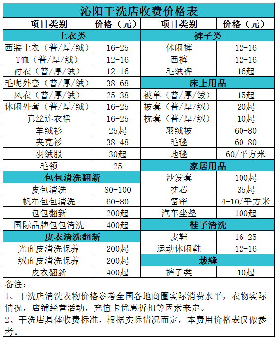 汝州干洗店收費價格表【詳細收費標準】怎么收費更賺錢