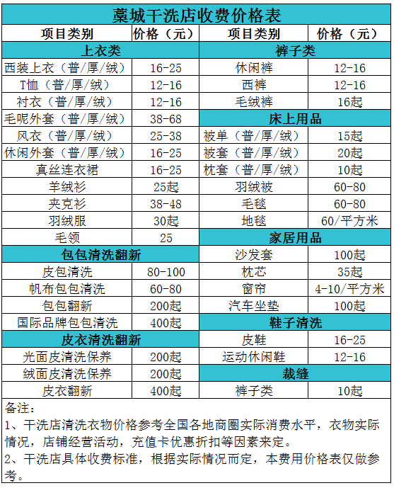 黃驊干洗店收費價格表【詳細收費標準】怎么收費更賺錢