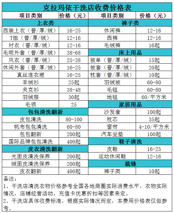 克拉瑪依干洗店收費價格表【詳細收費標(biāo)準(zhǔn)】怎么收費更賺錢