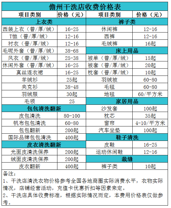 儋州干洗店收費價格表【詳細收費標準】怎么收費更賺錢