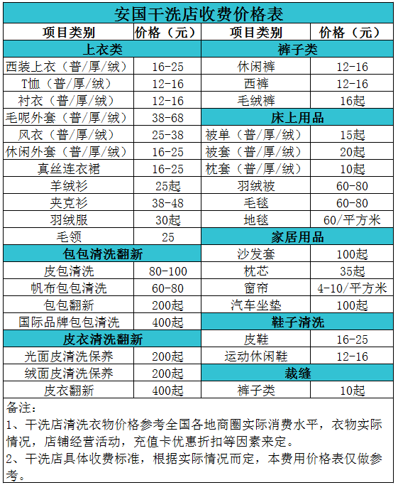 安國干洗店收費價格表【詳細收費標準】怎么收費更賺錢