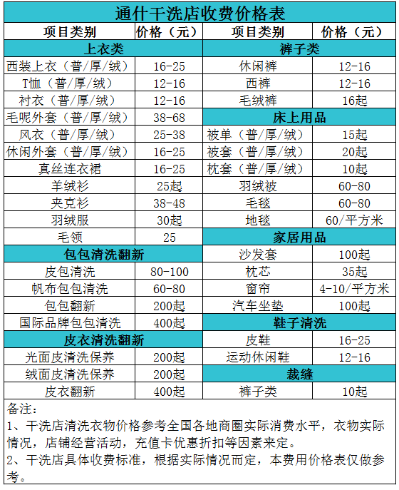 通什干洗店收費價格表【詳細收費標準】怎么收費更賺錢