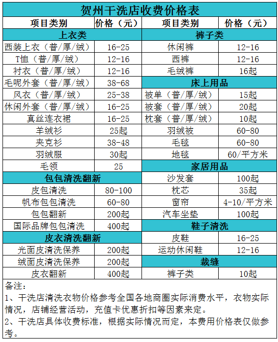 賀州干洗店收費價格表【詳細收費標準】怎么收費更賺錢