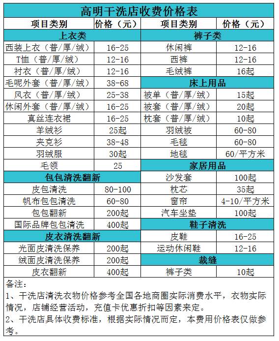 高明干洗店收費價格表【詳細收費標準】怎么收費更賺錢