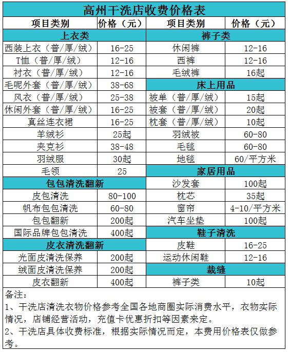 高州干洗店收費價格表【詳細收費標準】怎么收費更賺錢
