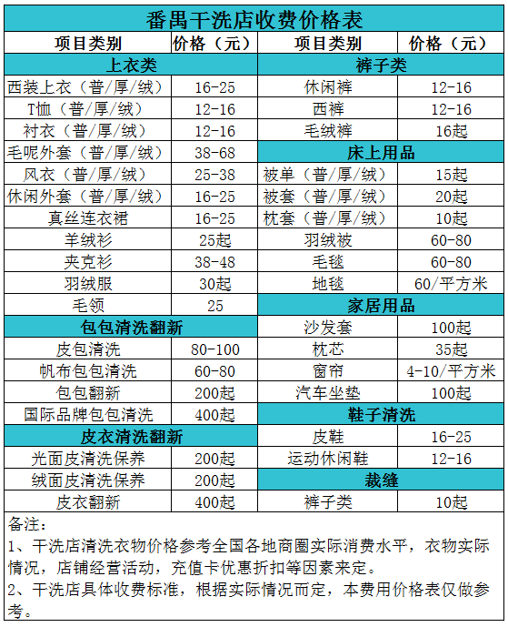 番禺干洗店收費價格表【詳細收費標準】怎么收費更賺錢