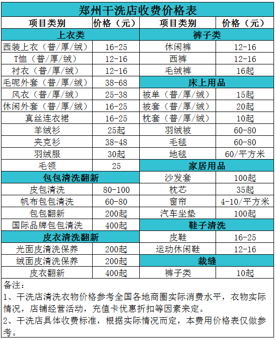 鄭州干洗店收費(fèi)價(jià)格表【詳細(xì)收費(fèi)標(biāo)準(zhǔn)】怎么收費(fèi)更賺錢