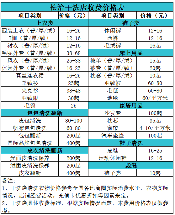 長治干洗店收費(fèi)價(jià)格表【詳細(xì)收費(fèi)標(biāo)準(zhǔn)】怎么收費(fèi)更賺錢