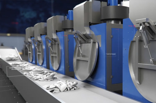 集成式自動(dòng)化洗滌流水線相比單機(jī)的優(yōu)勢 * 自動(dòng)快速裝、卸布草,大幅縮短人工輔助時(shí)間,提升工作效率
